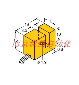 槽型傳感器,10mm高 塑料, PBT-GF30-V0 2線直流, nom. 8.2 VDC 輸出遵循本安型DIN EN 60947-5-6 (NAMUR)標準 電纜連接